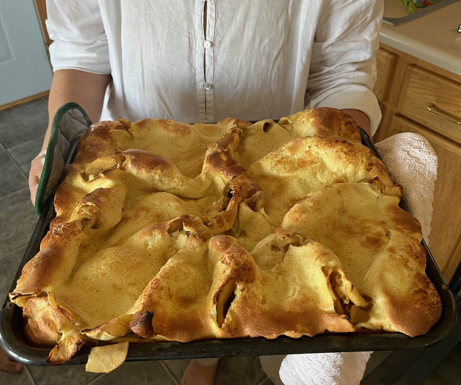 Once leeks have softened up a bit, turn the heat way down. After a few minutes stir in the beaten eggs and start folding and gently stirring. Once eggs are mostly cooked, add cheese and continue folding and stirring until cheese is mostly melted. Check seasoning and serve immediately.